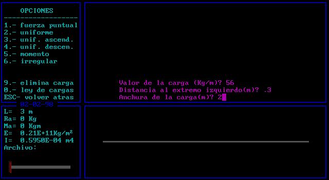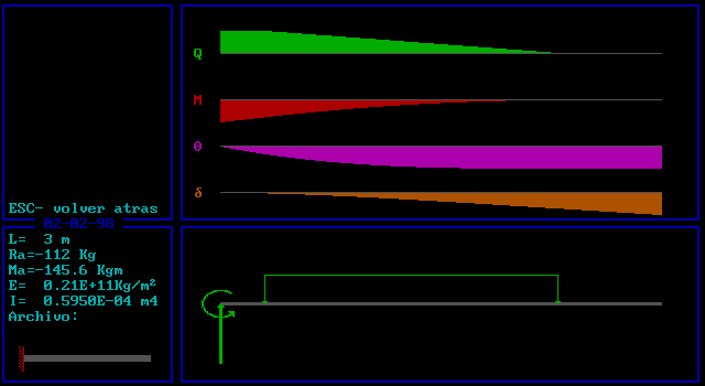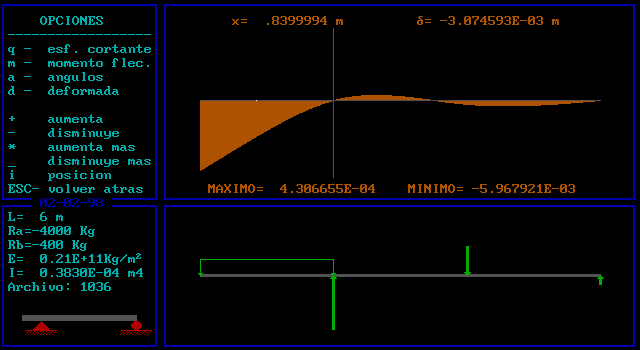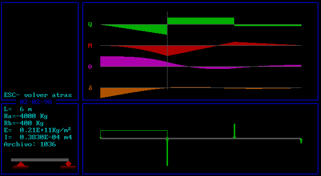 Con la opción 'informe' se presentan en una pantalla de texto todos los datos referentes a la viga: